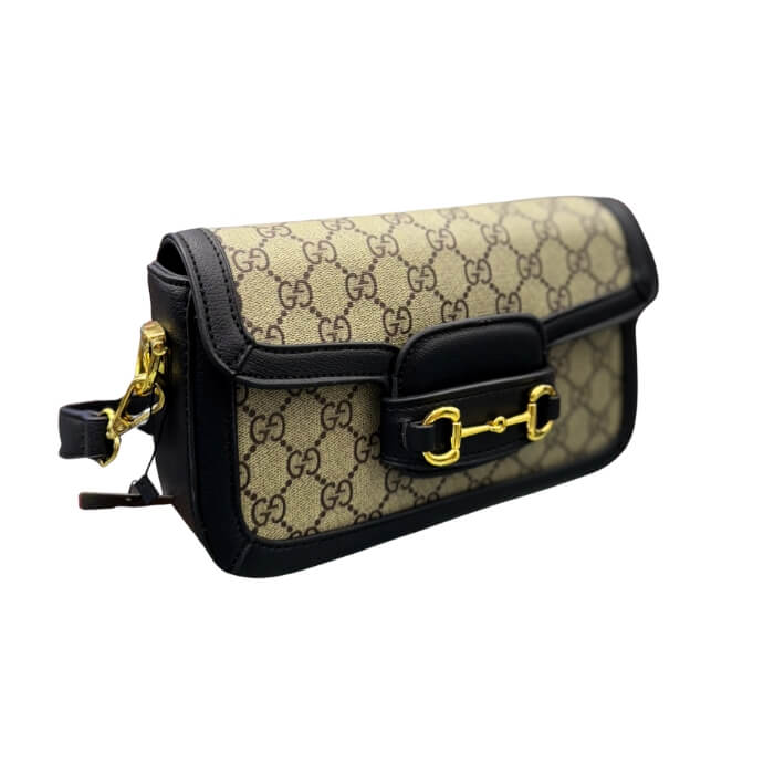Elegant monogram crossbody bag with gold accents — compact, stylish, and perfect for any occasion.