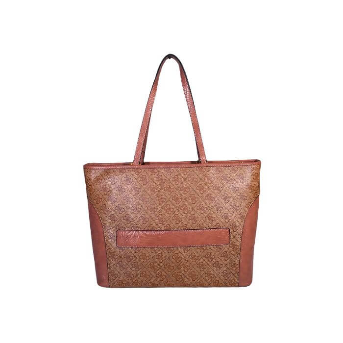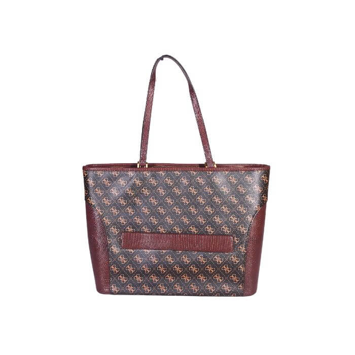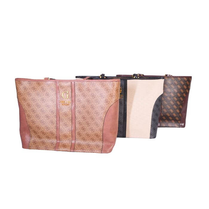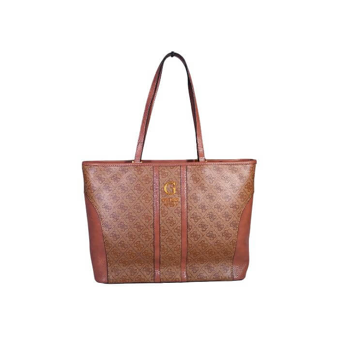 Elevate your everyday fashion with the Guess Monogram Panel Tote Bag, a perfect fusion of luxury and practicality. Crafted from high-quality synthetic leather, this tote bag features the signature Guess monogram print with contrasting panel details that add sophistication and style. The front is adorned with the classic “G” Guess logo in gold-tone hardware, reflecting timeless elegance. Spacious and versatile, this tote is ideal for carrying all your essentials — from your tablet, wallet, and makeup to documents or shopping items. The structured silhouette maintains its shape beautifully, while the sturdy dual handles ensure comfortable carrying throughout your day. Available in Brown, Black, Beige, and Coffee, the Guess Monogram Panel Tote complements both casual and formal outfits, making it an essential addition to every modern woman’s collection.