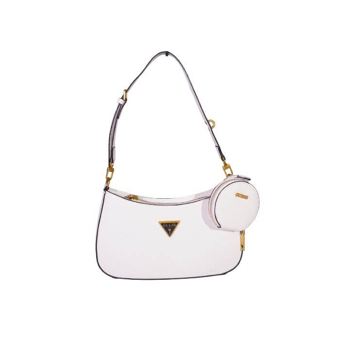 Add a touch of luxury to your everyday style with the Guess Textured Crossbody Bag with Mini Round Coin Pouch. Designed for the modern woman, this elegant and compact bag features a sleek textured finish and the signature Guess triangle logo in gold-tone hardware. This versatile crossbody bag offers both functionality and fashion, featuring an adjustable strap for hands-free convenience and a detachable round coin pouch that adds a stylish and practical accent. Perfect for carrying your daily essentials like your phone, wallet, keys, and makeup, it effortlessly transitions from daywear to an evening look. Available in Black, Red, Gold, and Beige, this Guess crossbody bag brings chic sophistication to any outfit, making it the perfect accessory for any occasion.